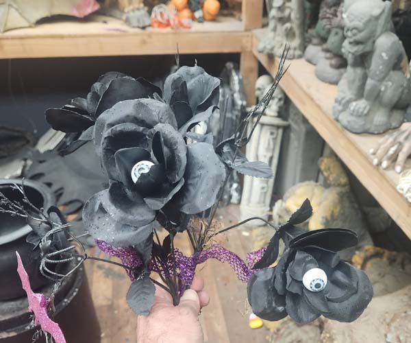 Black silk roses with eyes